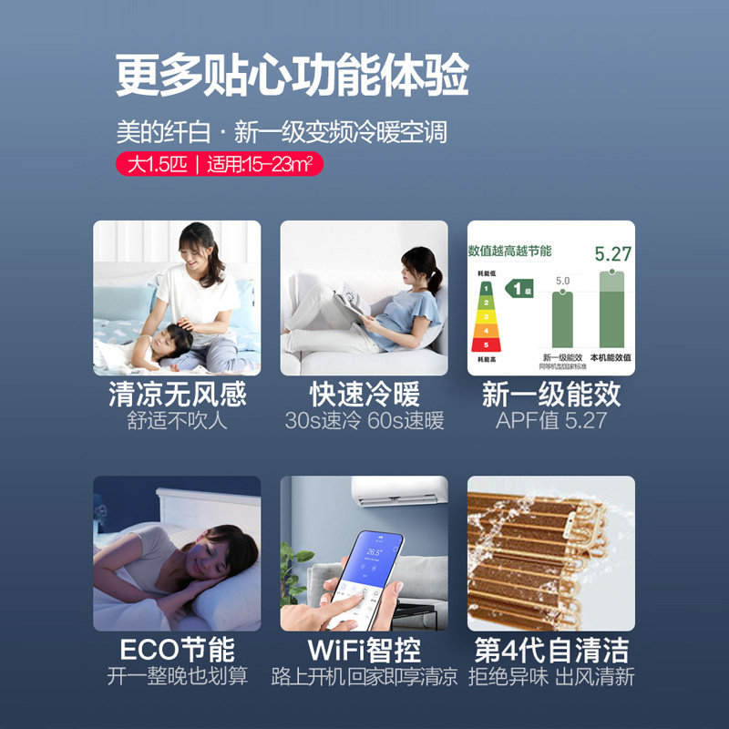 Beauty ciliary air conditioning No wind sensation 1 5 Wall-mounted Cold Air First-class Frequency Conversion Cold And Warm Wall-mounted Intelligent official 35MWA