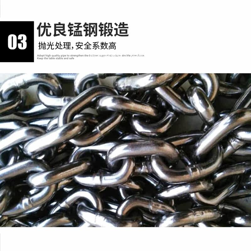 4MM steel chain 6MM manganese steel (pull 1.3 tons) 6MM common steel (0.8 tons) 6.3MM manganese steel (pull 1.4 tons) 8MM manganese steel (2 tons) 10MM manganese steel (