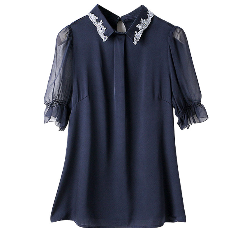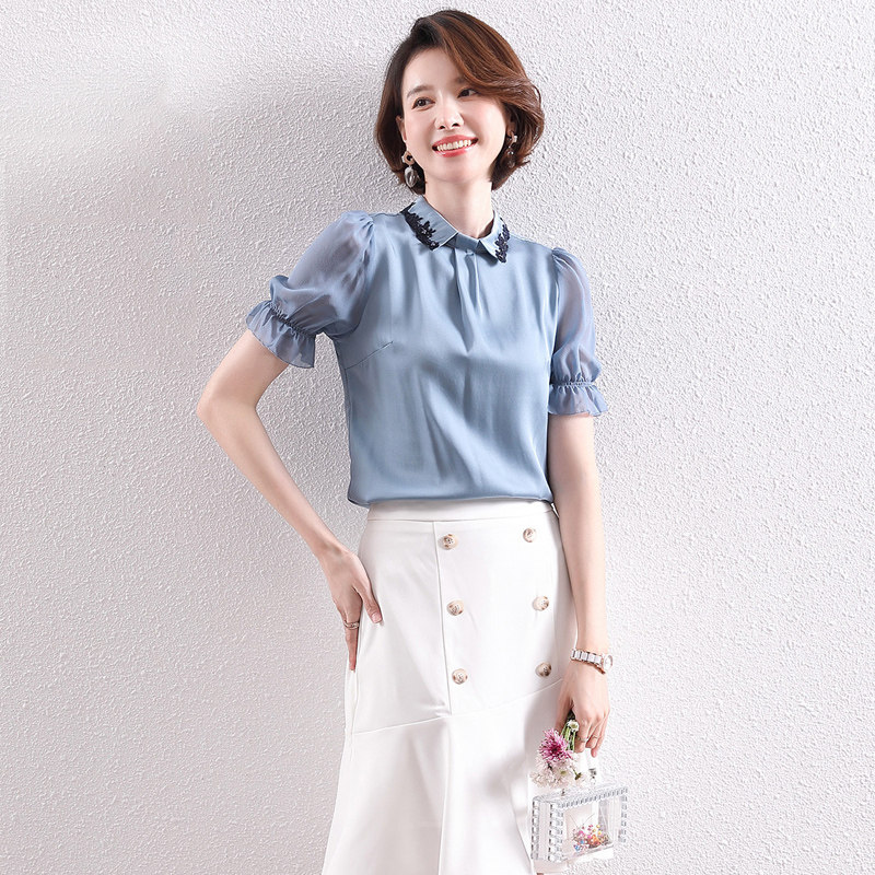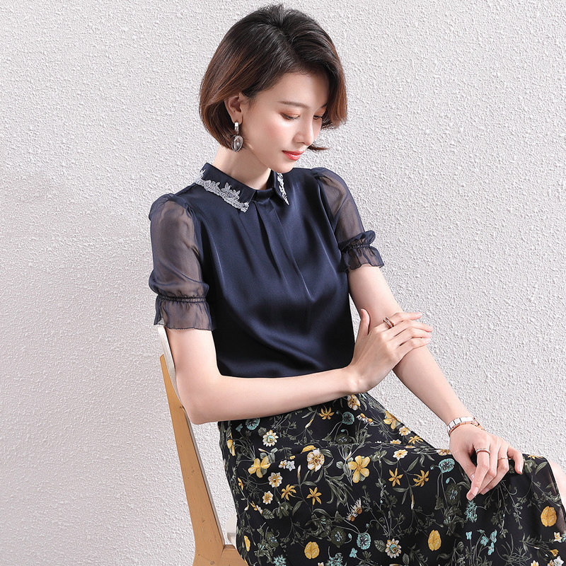 Heavy silk shirt women 2020 summer thin new fashion temperament lace short-sleeved capable professional silkworm top - Taobao