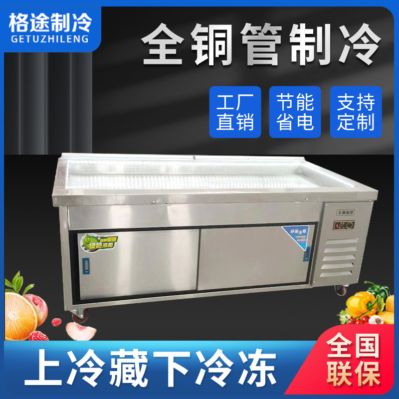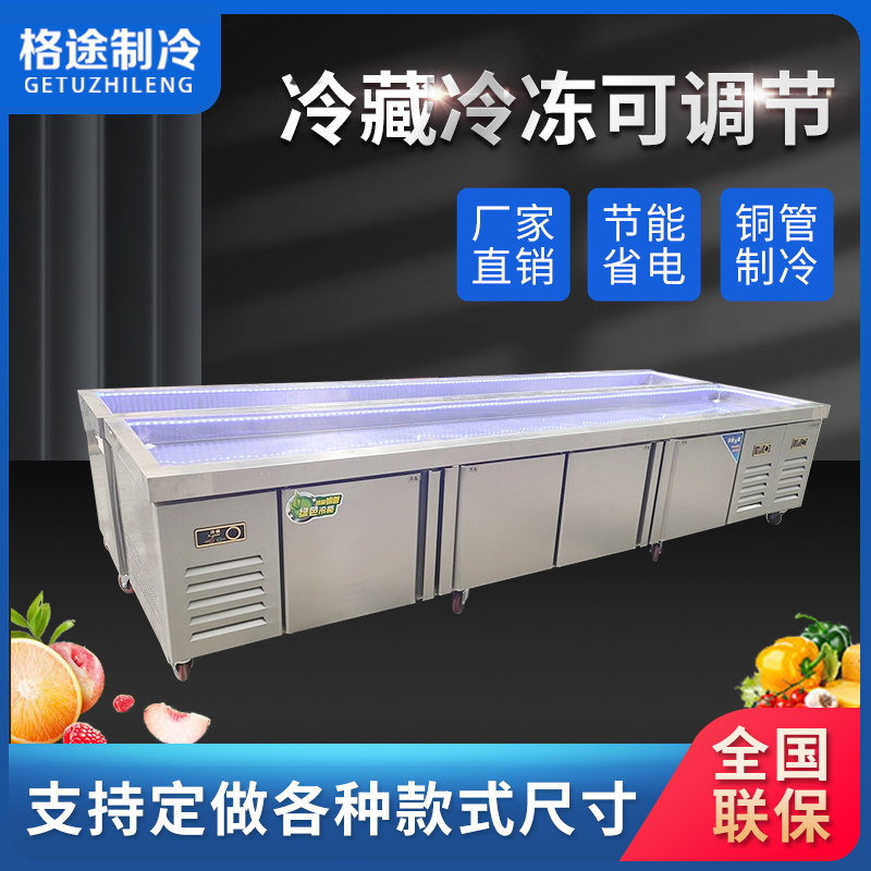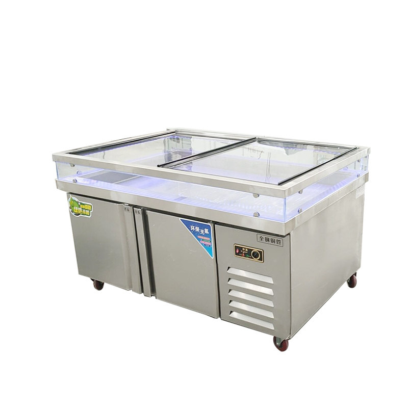 Ice table stainless steel commercial frozen refrigerated supermarket seafood custom order table cooked food preservation display slotted freezer