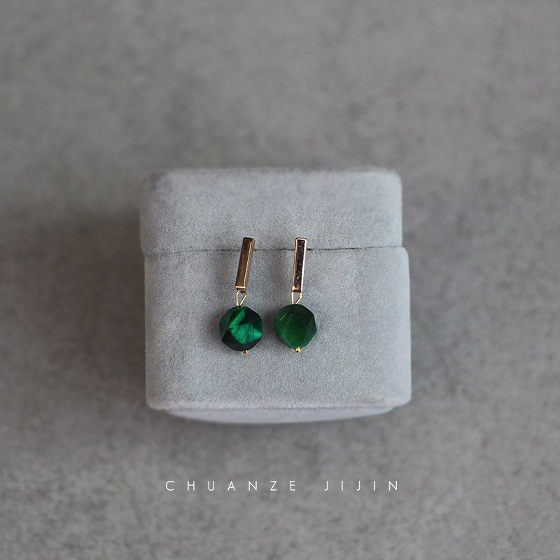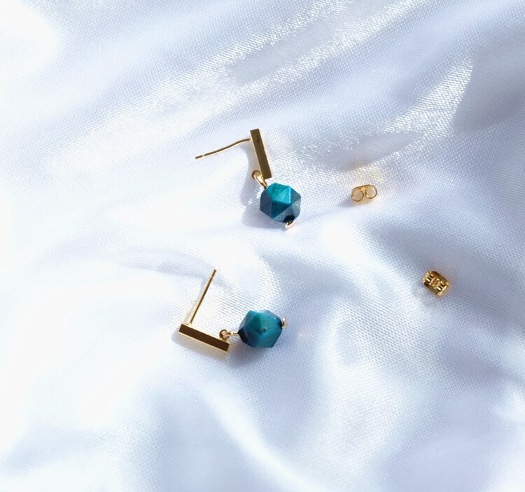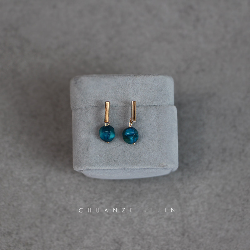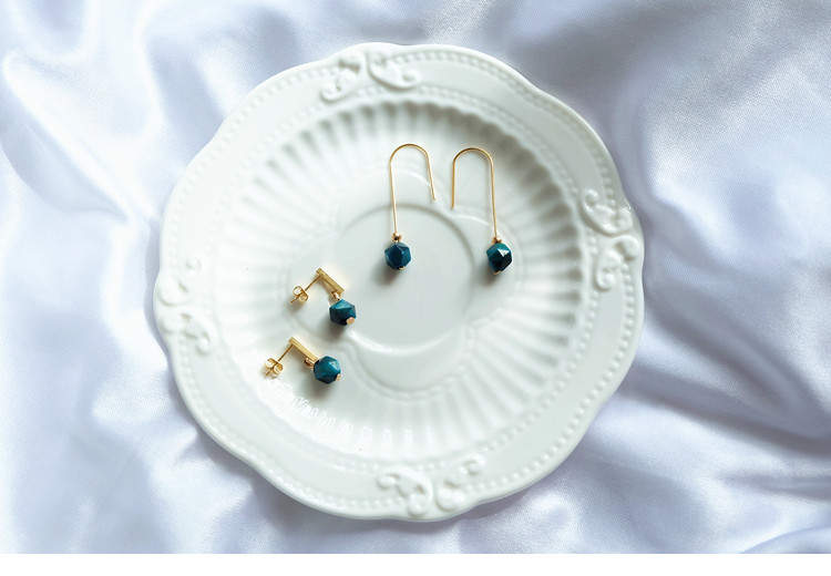 Blue Danube Peacock Blue Green Pine Stone Tiger Eye Stone Custom Ear Pin 18K Bag Gold Ear Hook Earring Retro Style