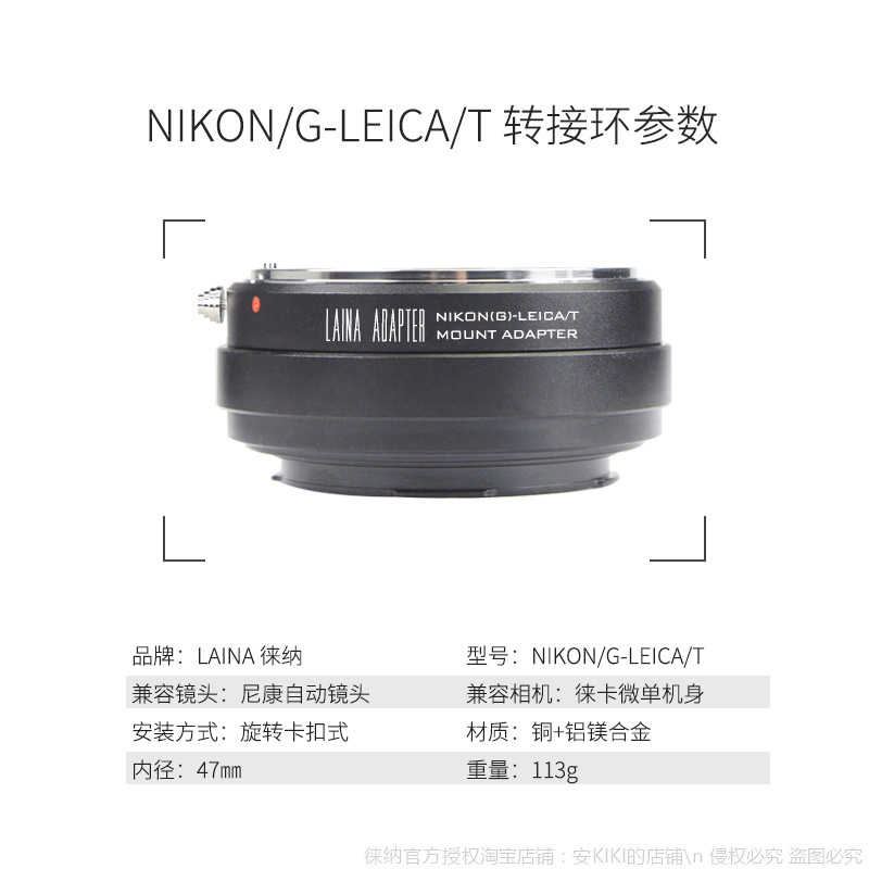 The Leina AI G-to-T adapter ring is suitable for the Nikon F-lens to Leica LEICA LT Panasonic S1R L mount