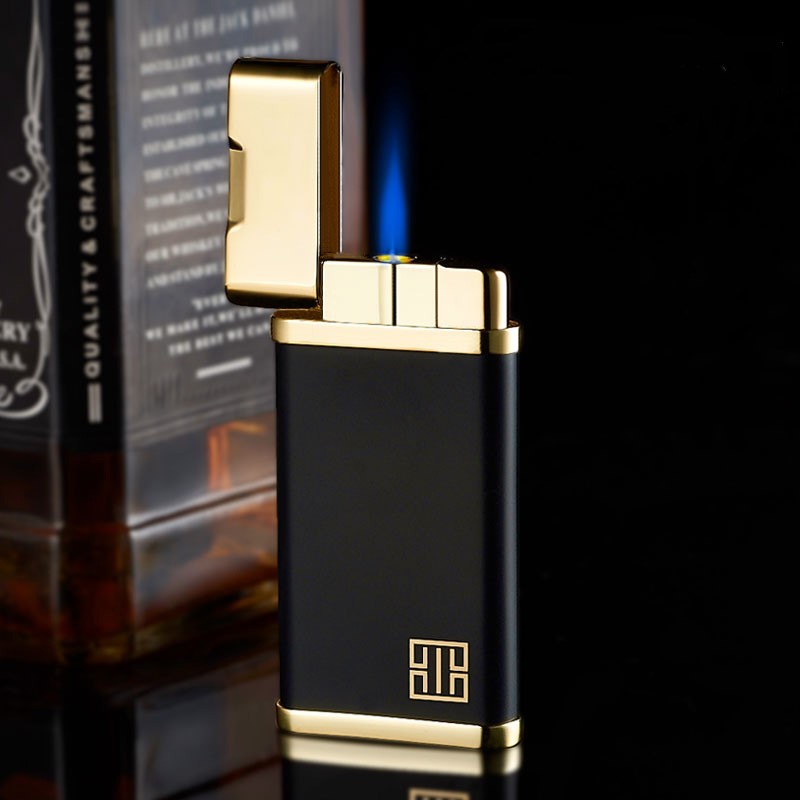 Hong Kong brand high-end ultra-thin windproof lighter inflatable lighter retro nostalgic straight blue flame flip lighter