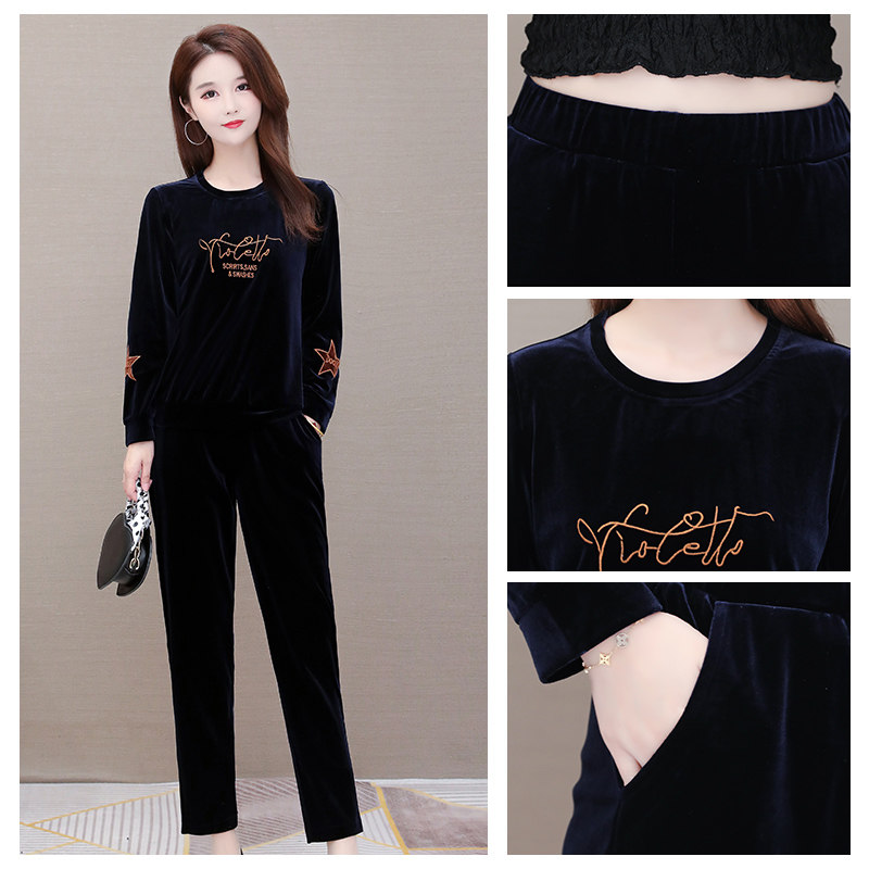 Fashion Gold Velvet Long Sleeves Two Sets Women's Spring Dress 2022 Spring Autumn New Loose Cover Belted Smoke Pipe Pants Casual Suit