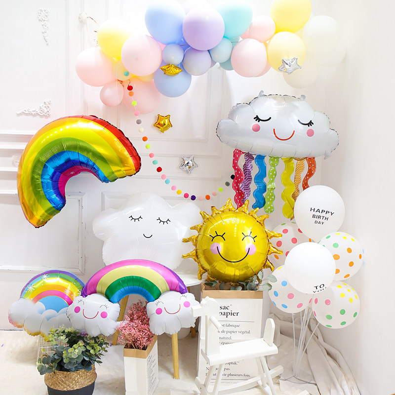 New tassel cloud aluminum film white cloud aluminum film rainbow clouds with snowflake aluminum film double smiley rainbow cloud aluminum film golden smiley sun aluminum film large colorful rainbow