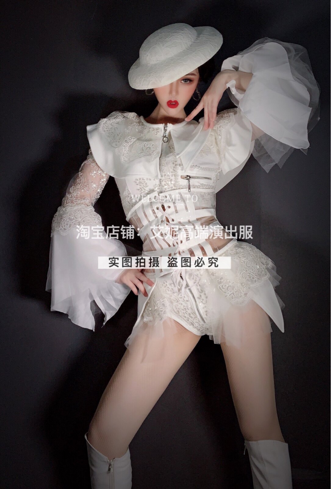 TT high-end nightclub bar singer djds dance team gogo retro court white suit costumes
