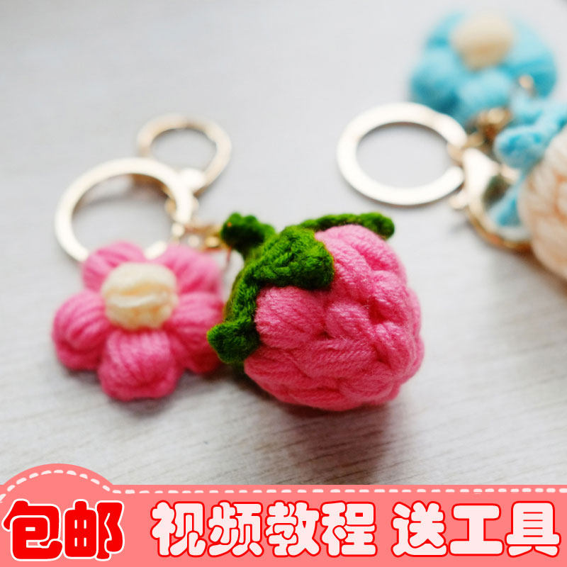New April Hand Made Wool Crochet DIY Handmade Material Pack Milkshake Strawberry Key Chain Package Packing