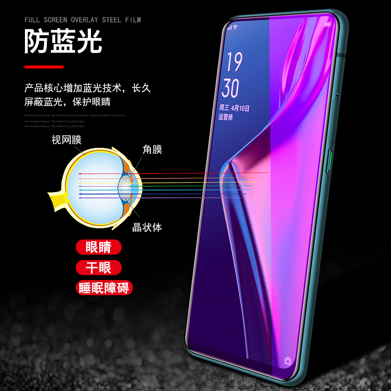 oppoa3 Tempered Film Full Screen Covering Oppok3 Original anti-blue opopop anti-fall k3 All-pack whiteless edge 0pp0a3 Mobile Phone Film Oppoa3 HD rigid glass protection