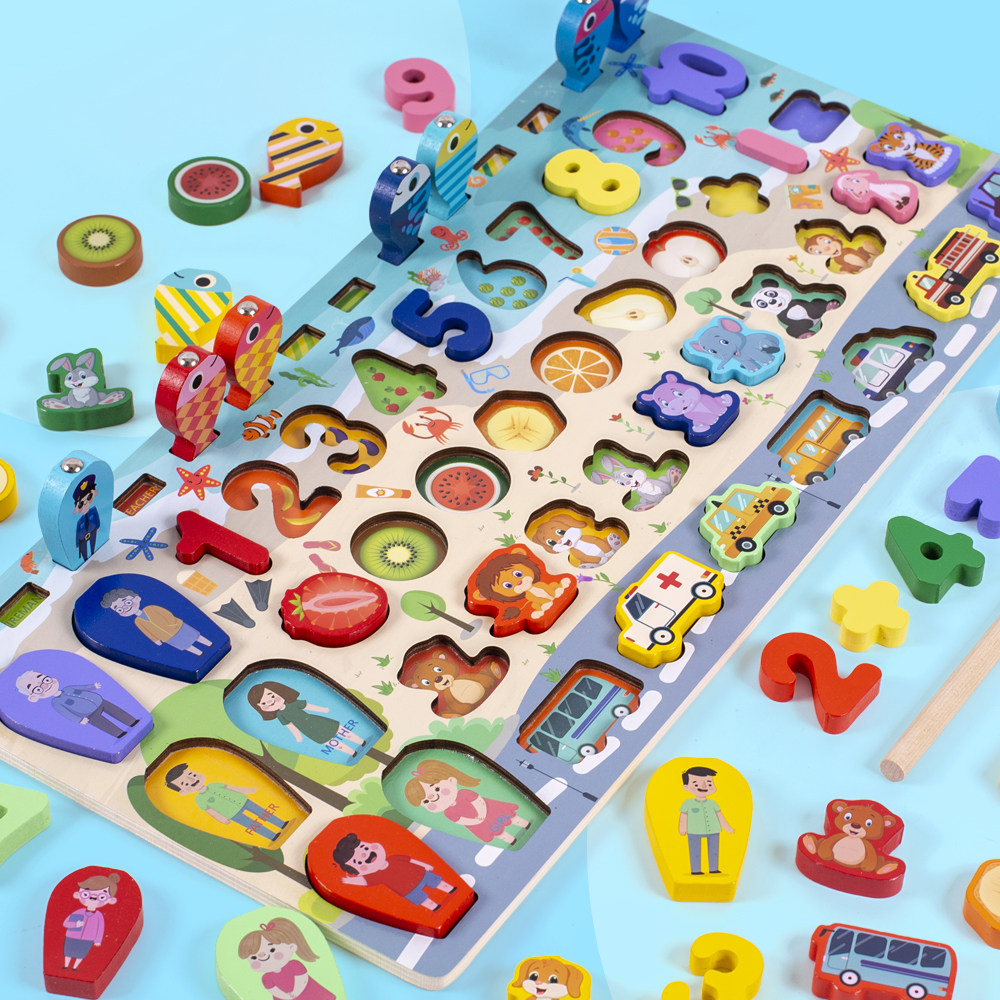 Children's multi-function logarithmic board cognition fruit animal number matching toy baby puzzle fishing 1-2 pair board 3