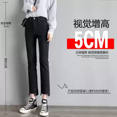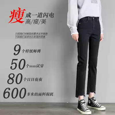 High-waisted jeans women's straight loose spring and autumn 2021 New Black thin flared pants nine-point pipe pants