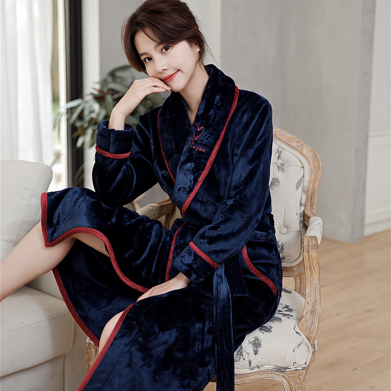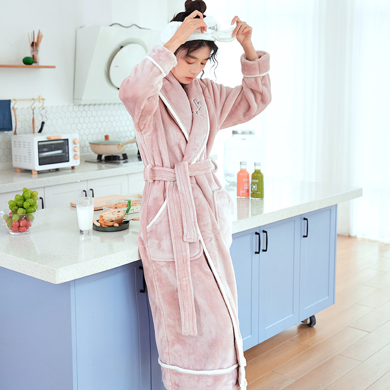 Nightgown women's long paragraph autumn and winter air-conditioned coral fleece thickened pajamas sexy nightdress winter cute long-sleeved men's bathrobe