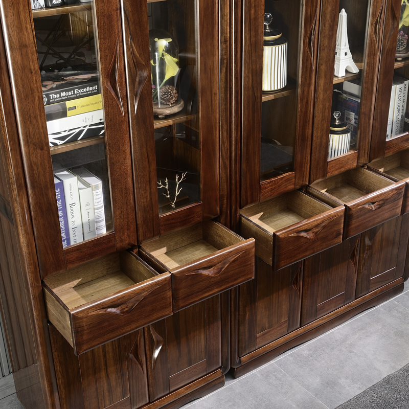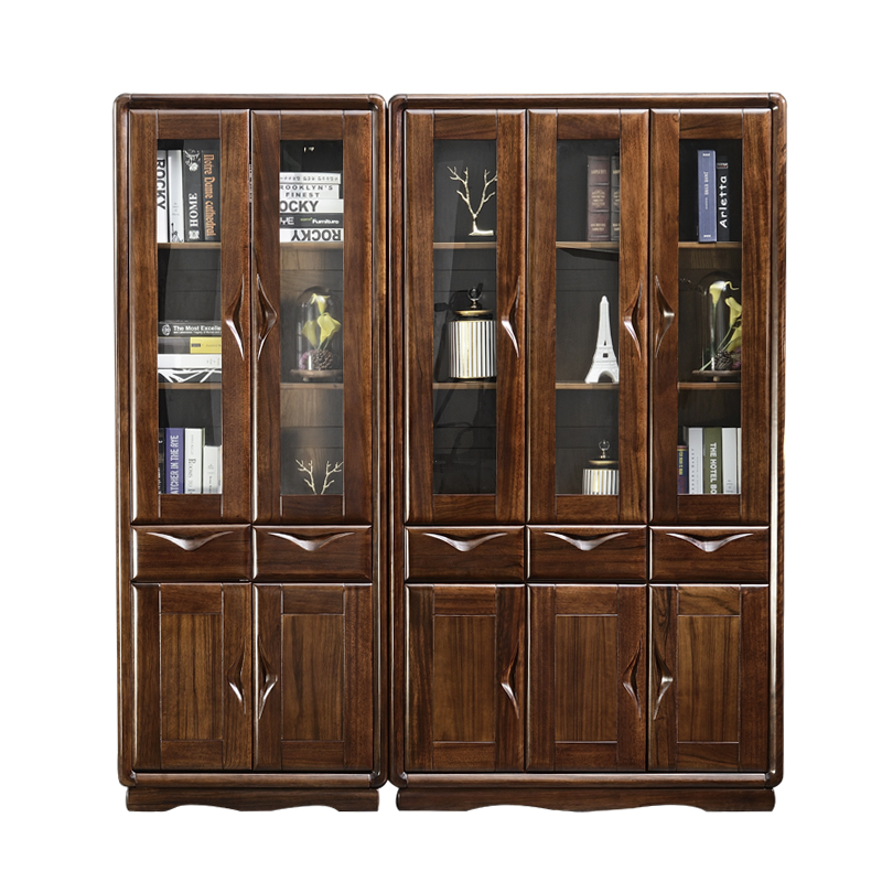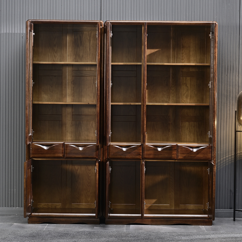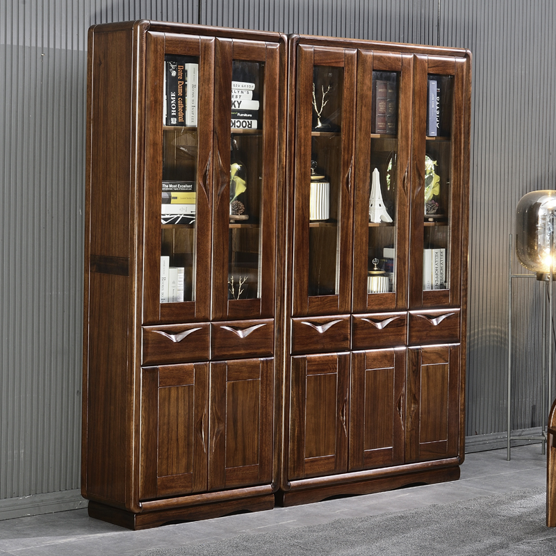 New Chinese style modern minimalist black walnut solid wood quality bookshelf multifunctional three or four door economical combination locker