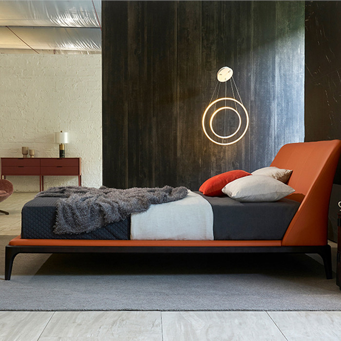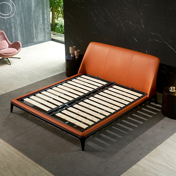 Italian Minimalist Import Headlayer Genuine Leather Bed Nordic Brief Solid Wood Light Lavish Double Soft On Wedding Bed Love Marsee Orange Bed