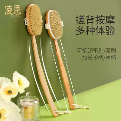 Lingen pig mane bathing brush Bathing brush Body dry brush Rubbing bath rubbing back artifact brush Acid body massage long handle brush