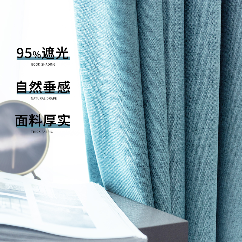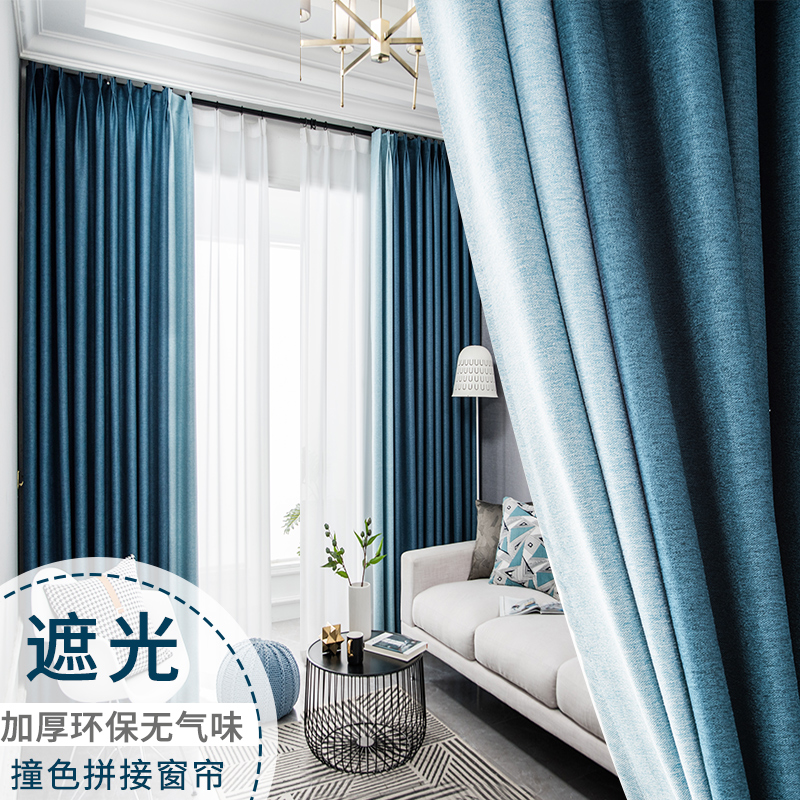 Curtains Nordic style simple shading 2022 new living room bedroom sunscreen insulation full shade cloth solid color stitching