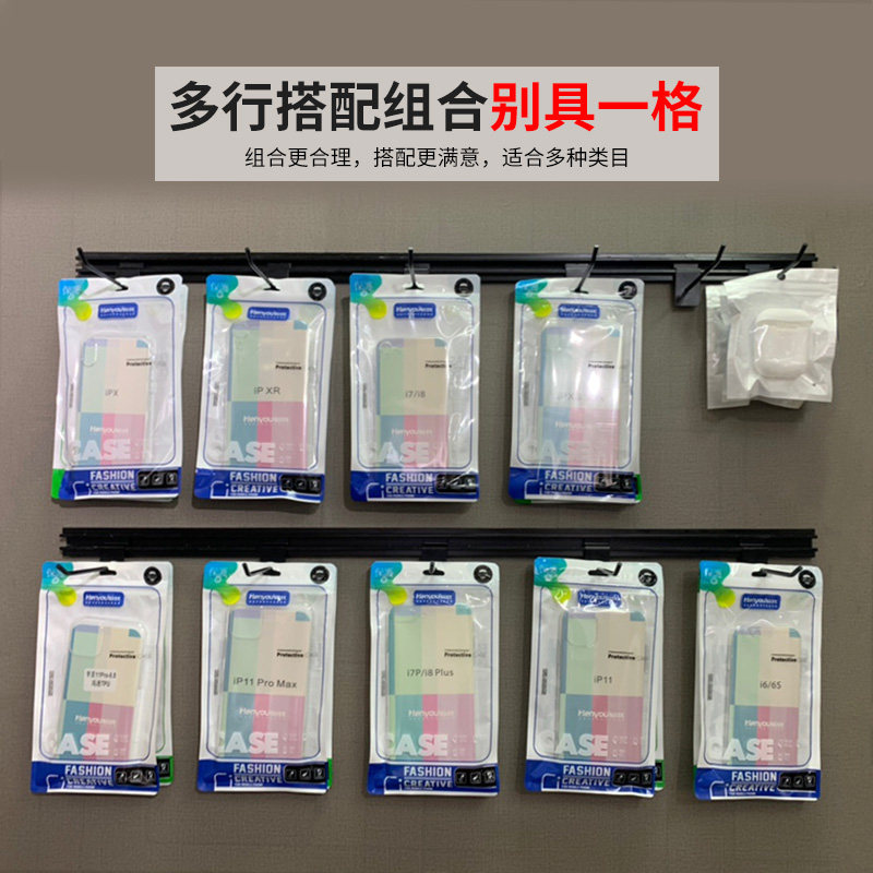 Wall-mounted black slot bar display rack hook jewelry mobile phone accessories digital products socks commodity shelf wall-mounted