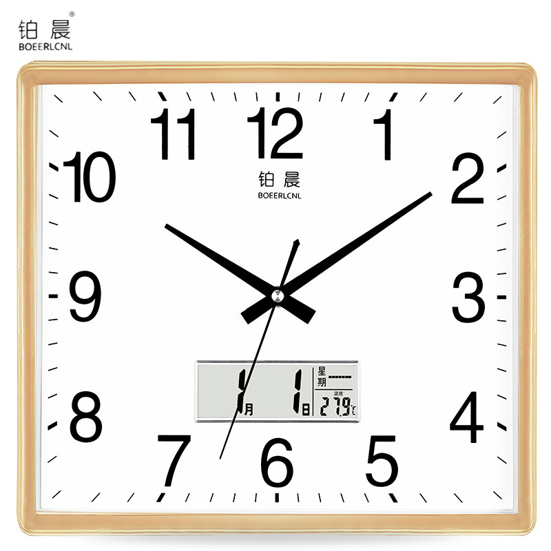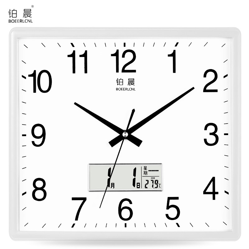 Square electronic wall clock living room mute clock Household personality creative fashion art calendar Quartz clock hanging on the wall