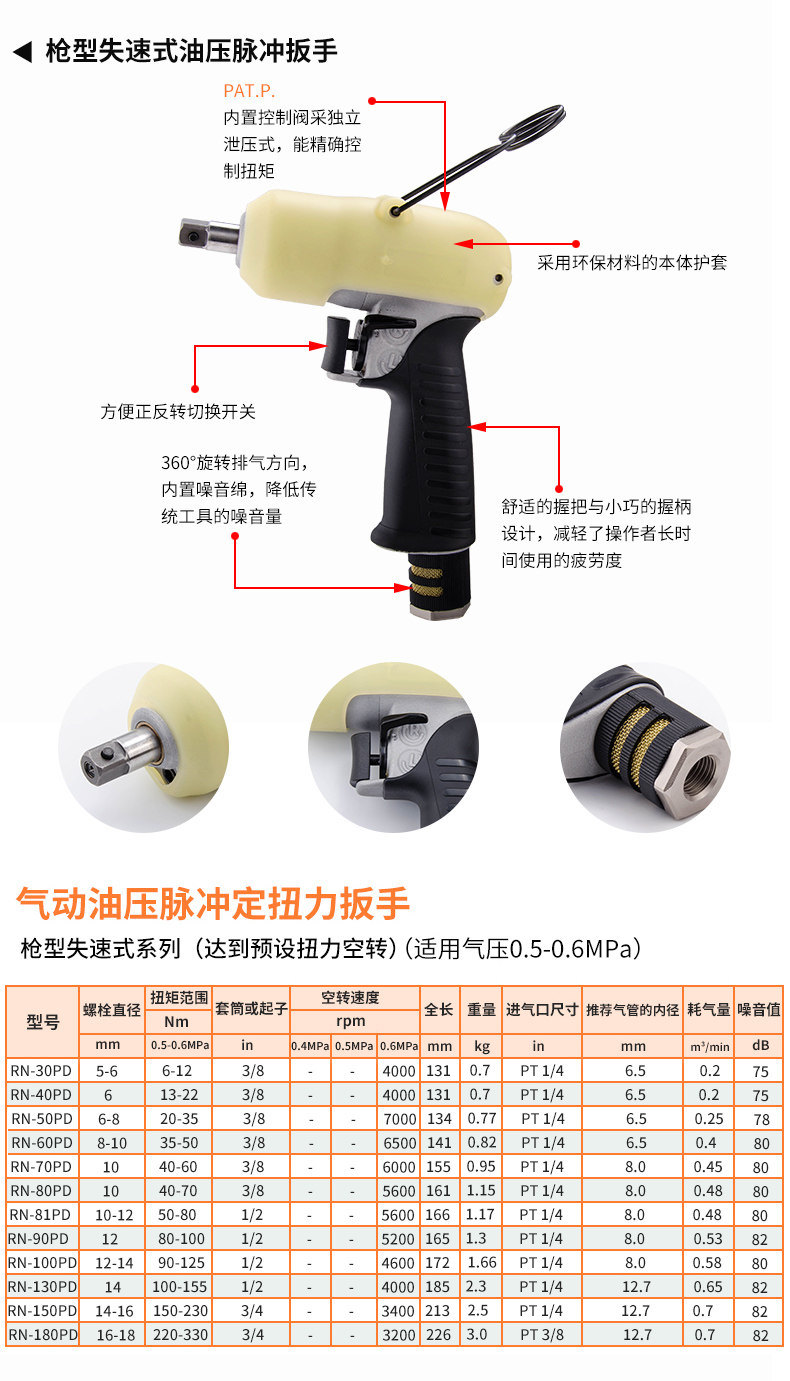 RN-50SC stall-type oil pressure pulse wrench RT-50SDL broken gas type oil pressure pulse wrench RN-40PD stall-type oil pressure pulse wrench RT-50PDL off-gas type