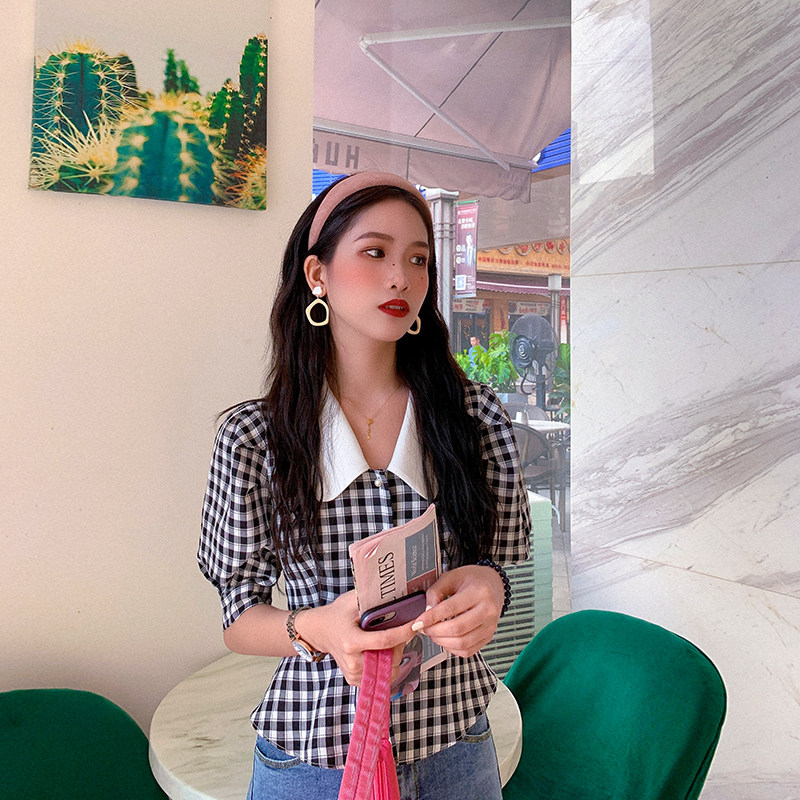 Deng Liusix Summer Sweet and Aging Foreign Pie 100 Lap Retro Gugge Short Sleeve Bubble Sleeve Blouse Blouse Women's Shirt
