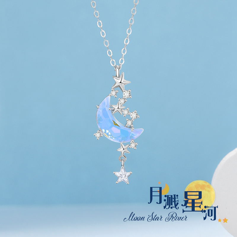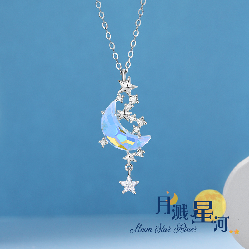 Moon splash galaxy necklace female sterling silver collarbone light luxury niche design sense 2021 new summer Tanabata birthday gift