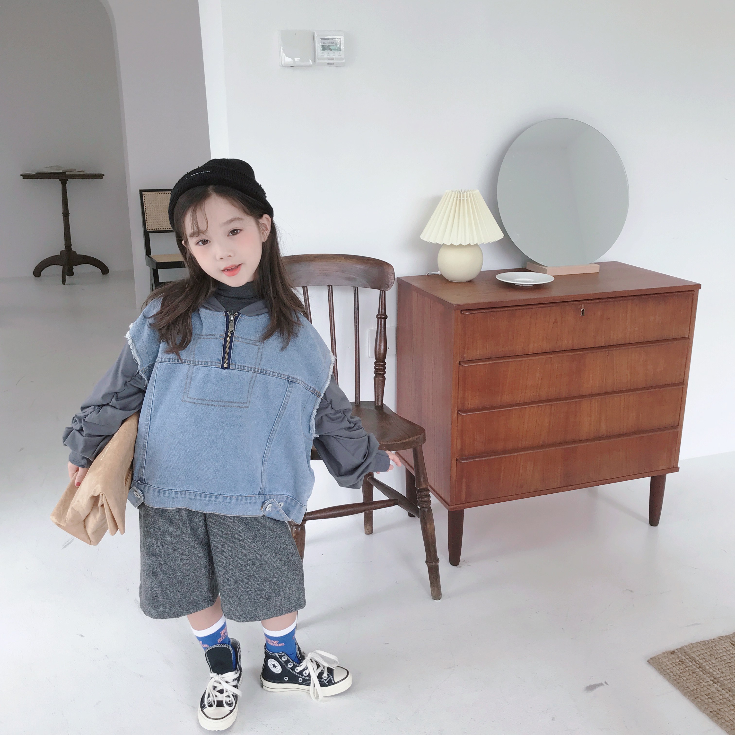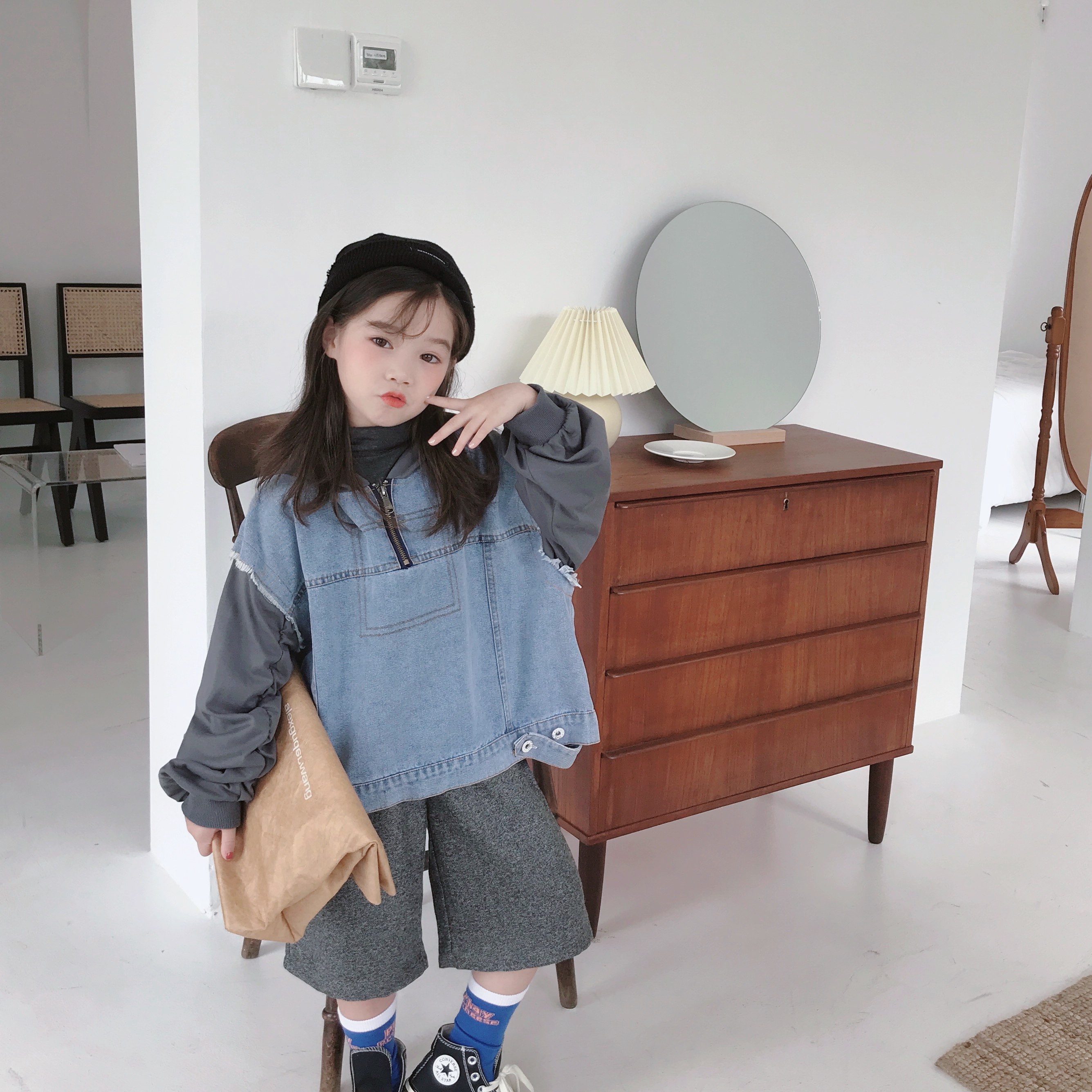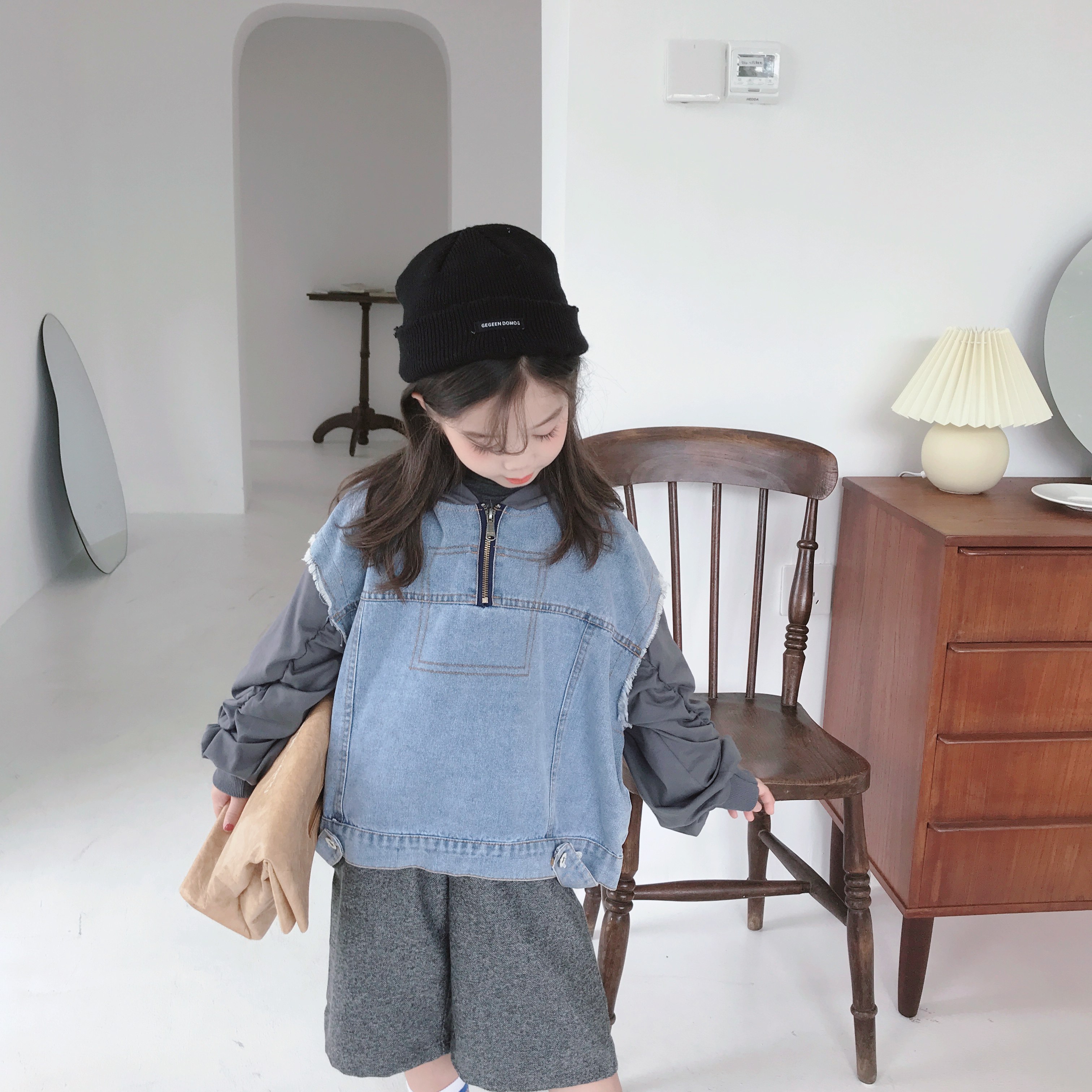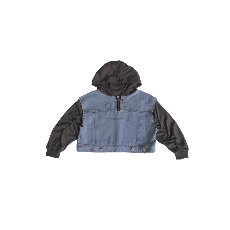 No retreat to custom boy and girl cowboy hood jacket children bubble sleeve splice fake two cowboy jacket
