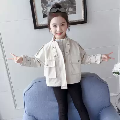 Girls Spring and Autumn Jacket 2021 New Children's Autumn Women's Short White Jacket Autumn Girls