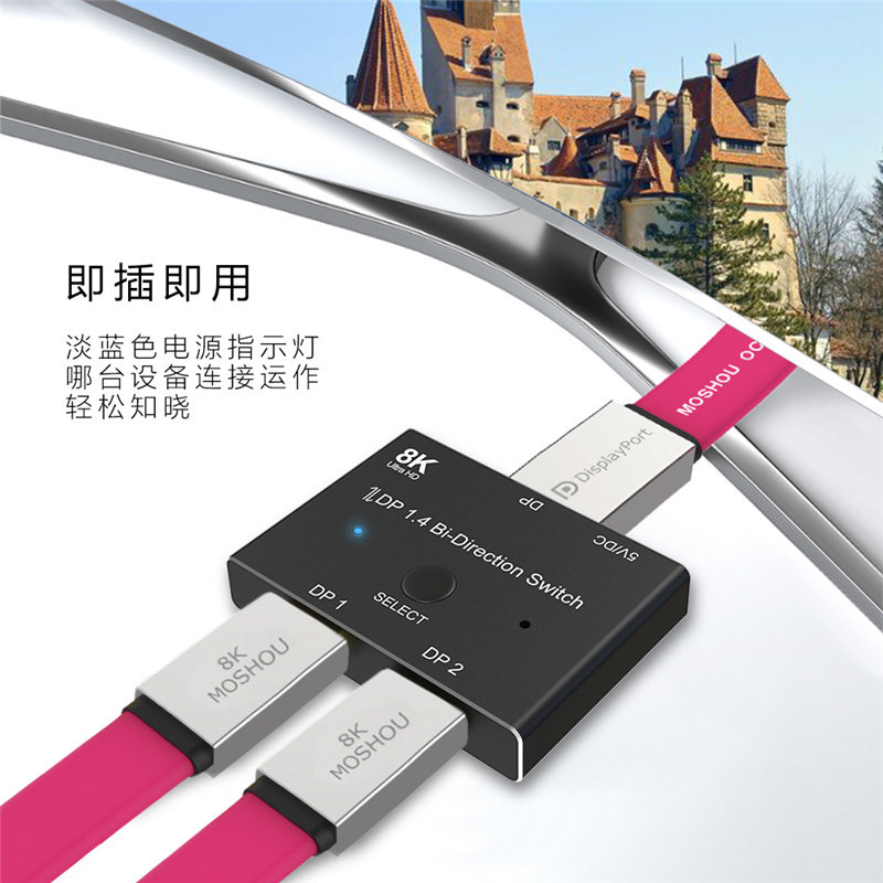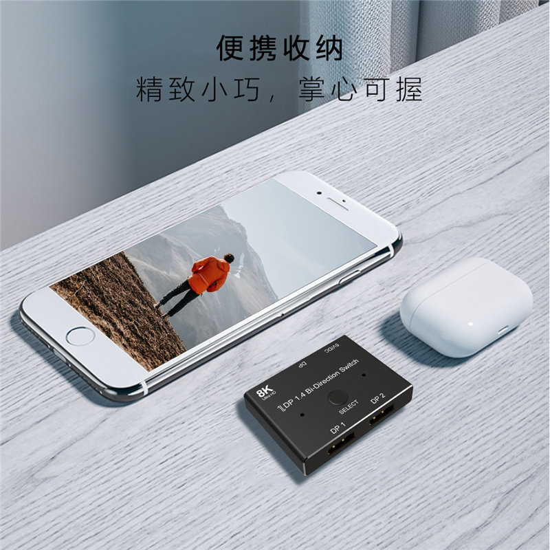 DP Version 1.4 8K One-Point Two Switcher Two 2-in 1-out Split Screen Splitter Computer Monitor 4K@144Hz