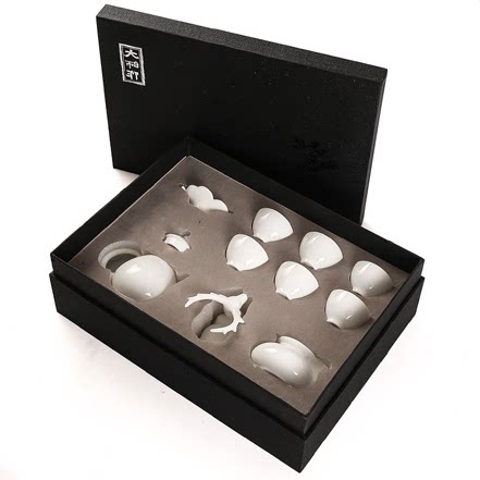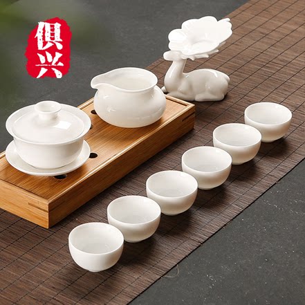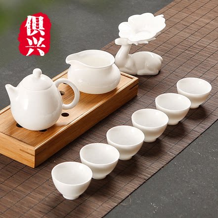 Shea Butter Jade Porcelain Kung Fu Tea Set Group Brief Vegetarian Yai White Porcelain Home Ceramic Tea Tea Tea Lid Bowl Teapot Tea Cup