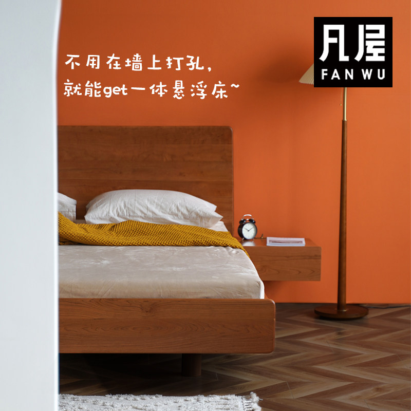 Fanwu furniture, sleep well, bedside table, solid wood floating wall hanging with lights, smart Japanese cherry wood storage, simple and small