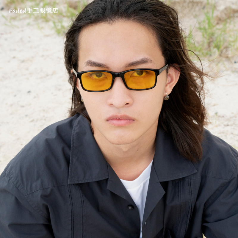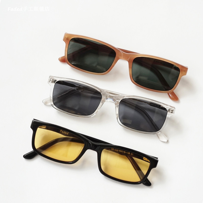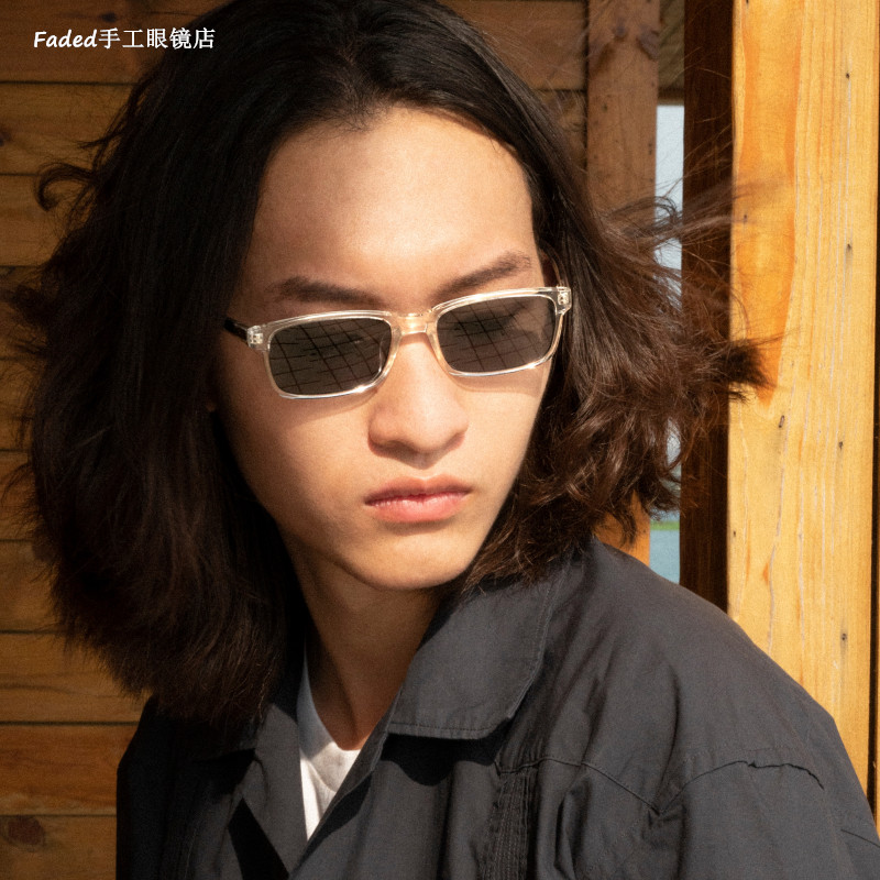 Faded yuppie avant-garde style tide retro imported plate slender square handmade glasses frame sunglasses sunglasses
