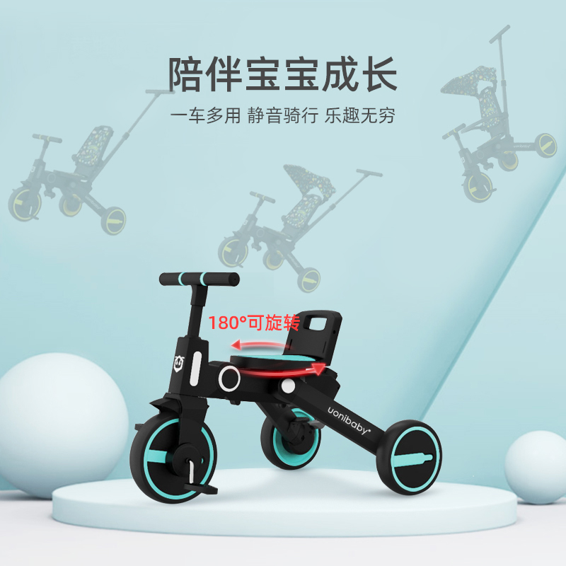 uonibaby children's tricycle doll artifact trolley double reversing folding lightweight baby baby bike