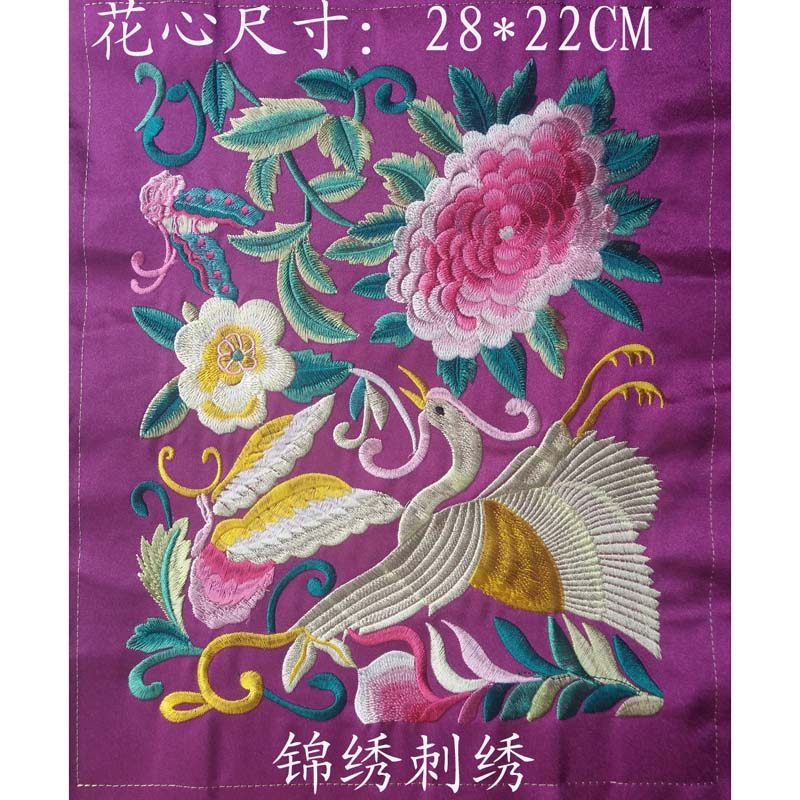 Rose red embroidery piece ethnic fan embroidery exquisite swan peony embroidery fabric