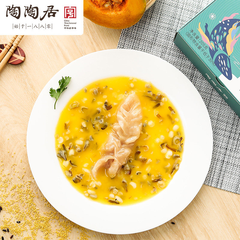 Soup juice (water pumpkin abalone pork chicken oyster oil peanut oil) flower gum black rice oat snowbud rice (glutinous corn)