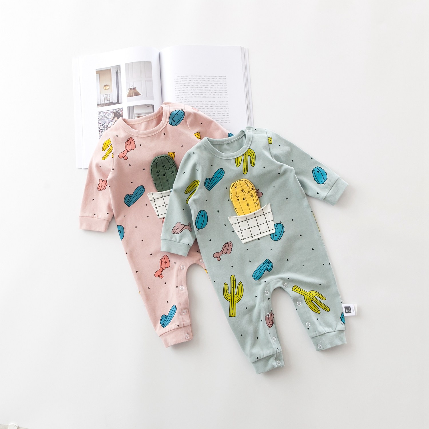 French Jacadi kid baby jumpsuit spring and autumn thin section men and women baby cotton jumpsuit cartoon go out romper