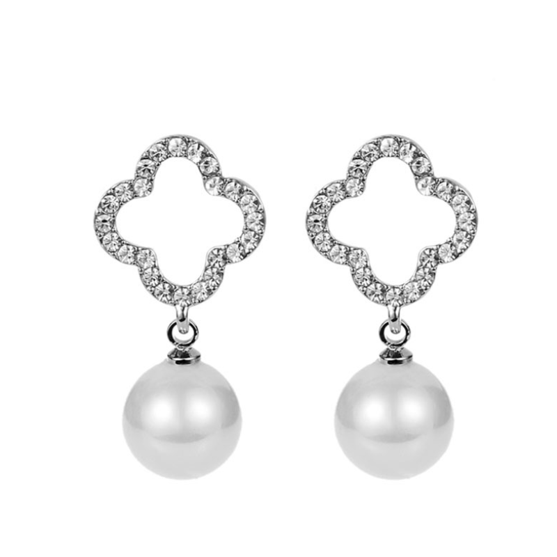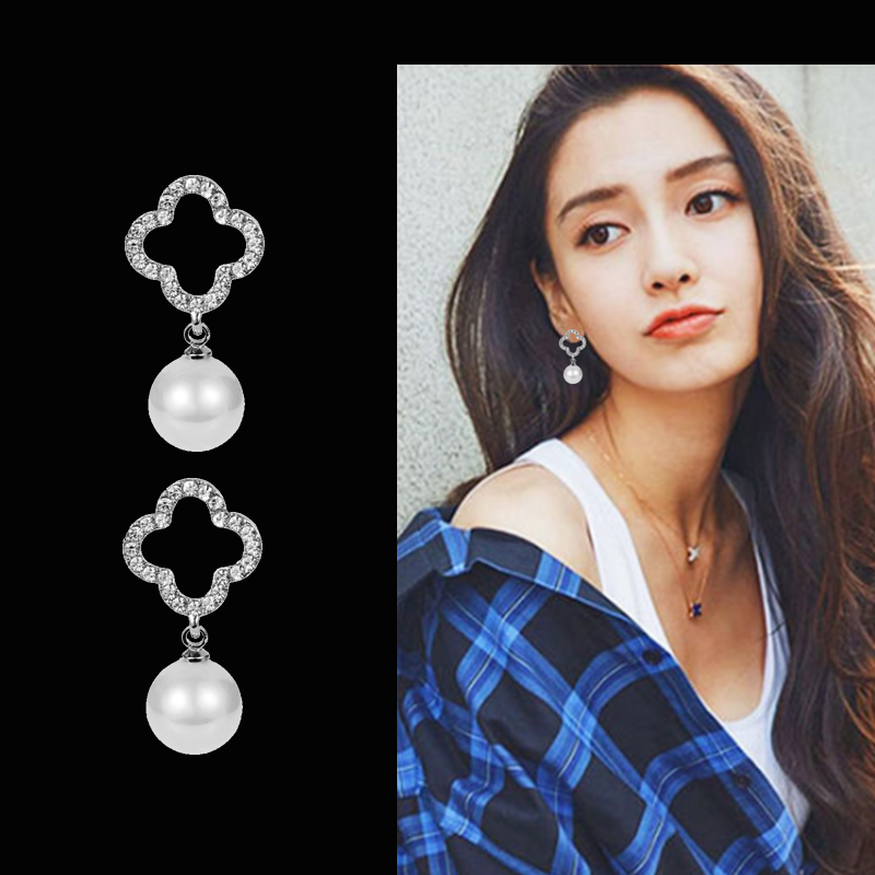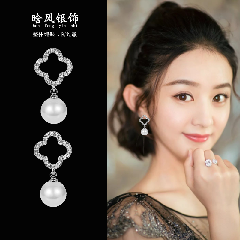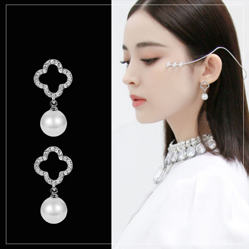 S925 sterling silver four-leaf clover pearl earrings women's 2020 new tide hypoallergenic net red simple temperament diamonds