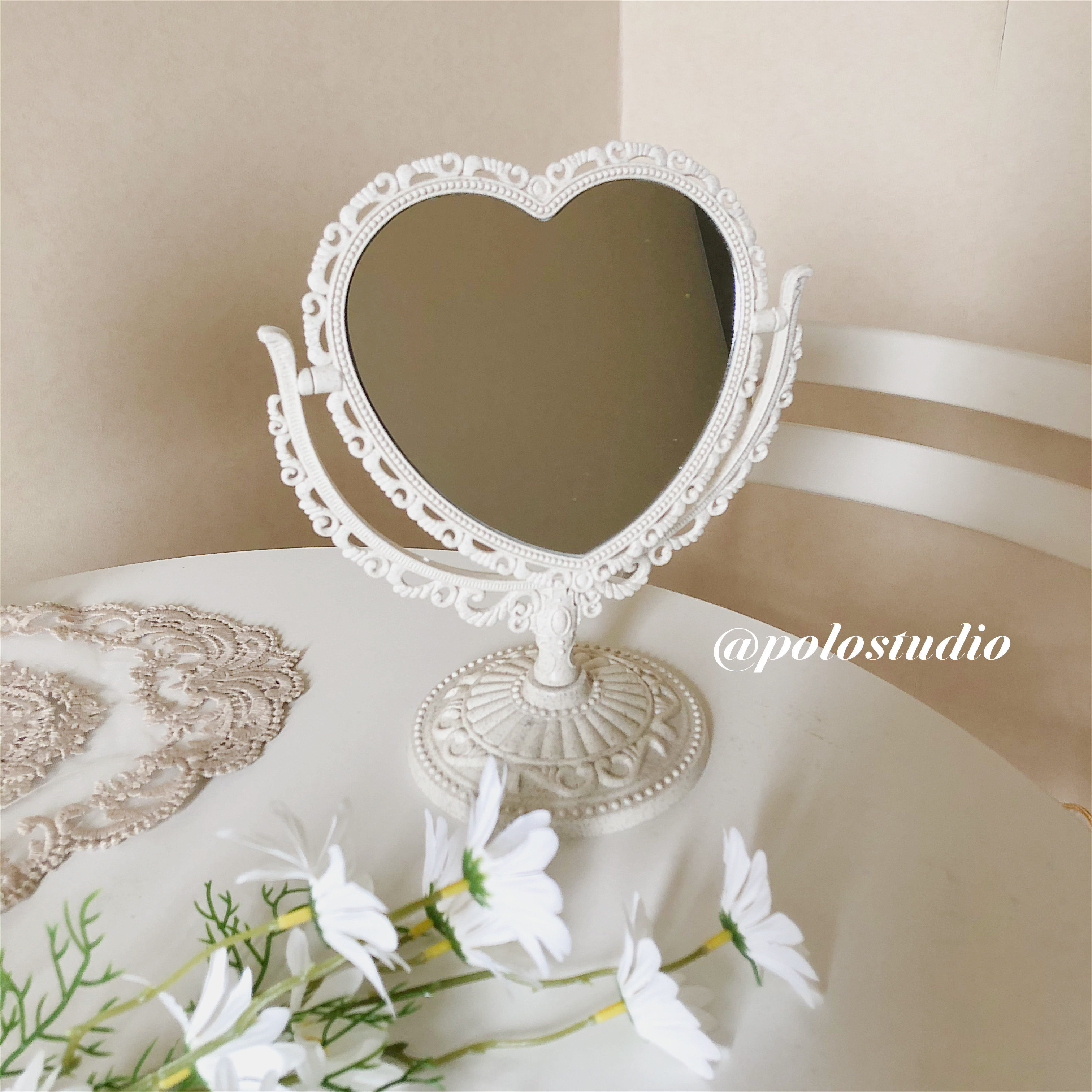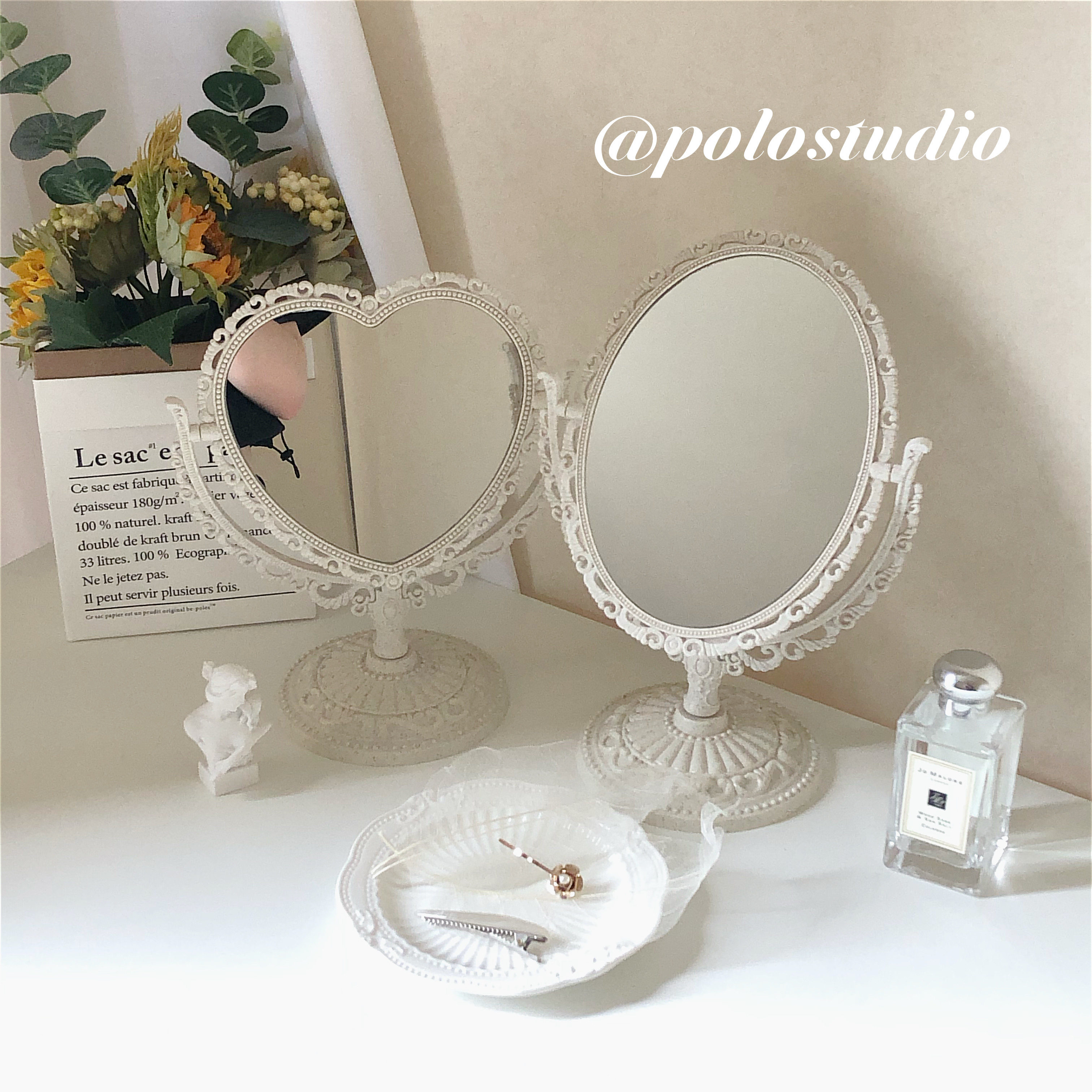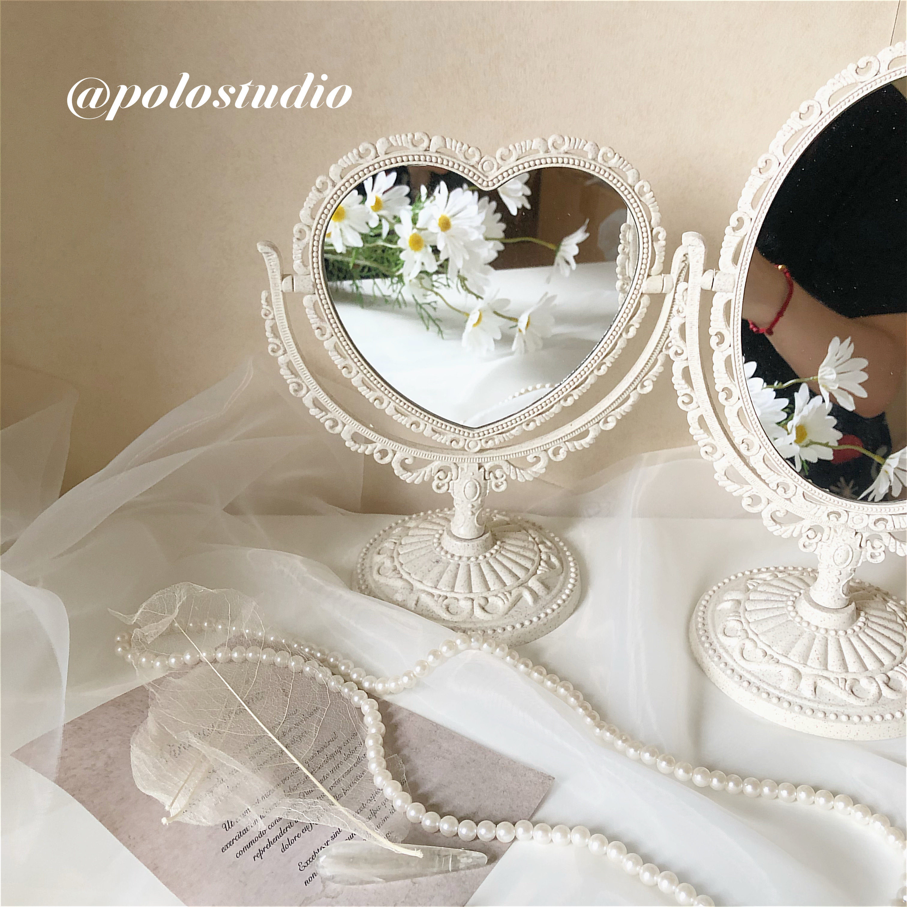 ins wind girl heart European retro relief double-sided oval love mirror cafe bedroom dressing table mirror