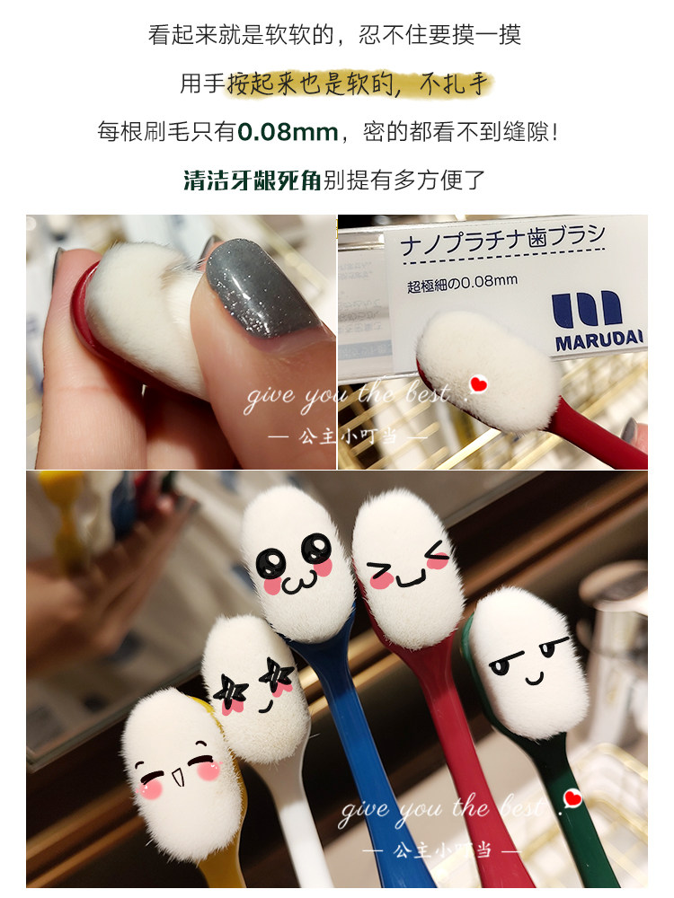 Japan Marudai MARUDAI million hair platinum nano toothbrush soft hair ultra-fine ultra-soft cleaning antibacterial family couple