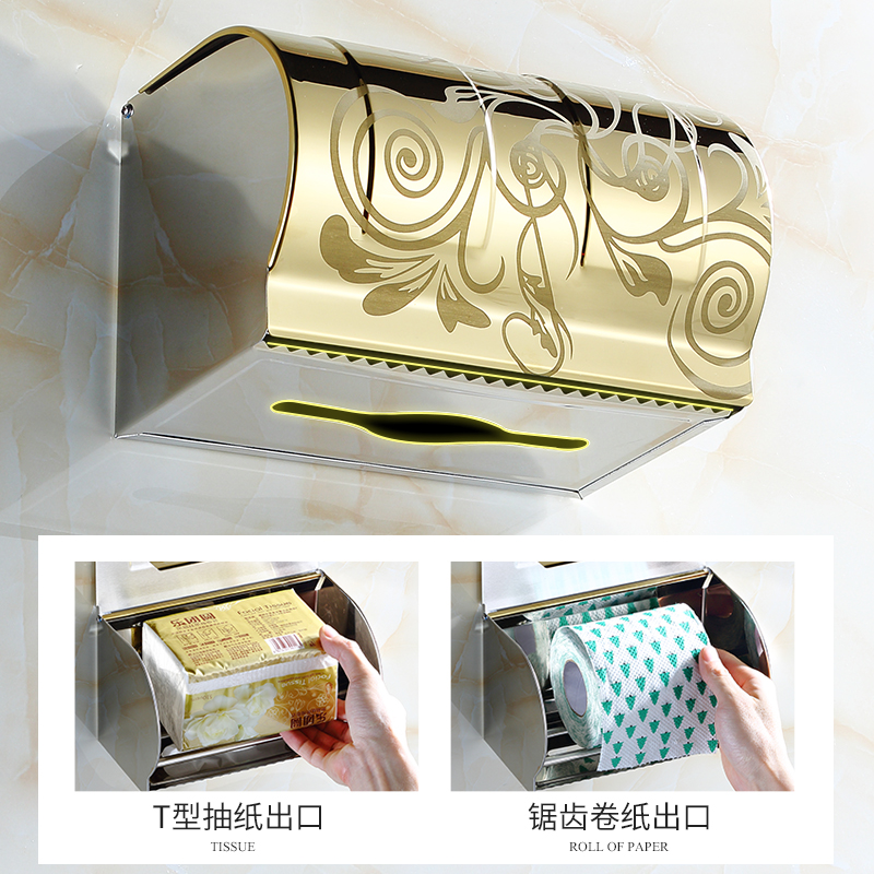 Makeup Room Tissue Box Stainless Steel Makeup Room Toilet Paper Box Home Waterproof Rolls Toilet Paper Toilet Paper Box Wall-mounted Free