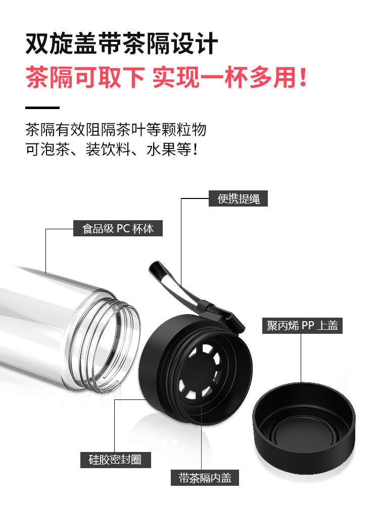 Screw cap-transparent black 800ML-one cup with two caps-free knight card screw cap-transparent white 800ML-one cup with two caps-free knight card screw cap-transparent gray 800M