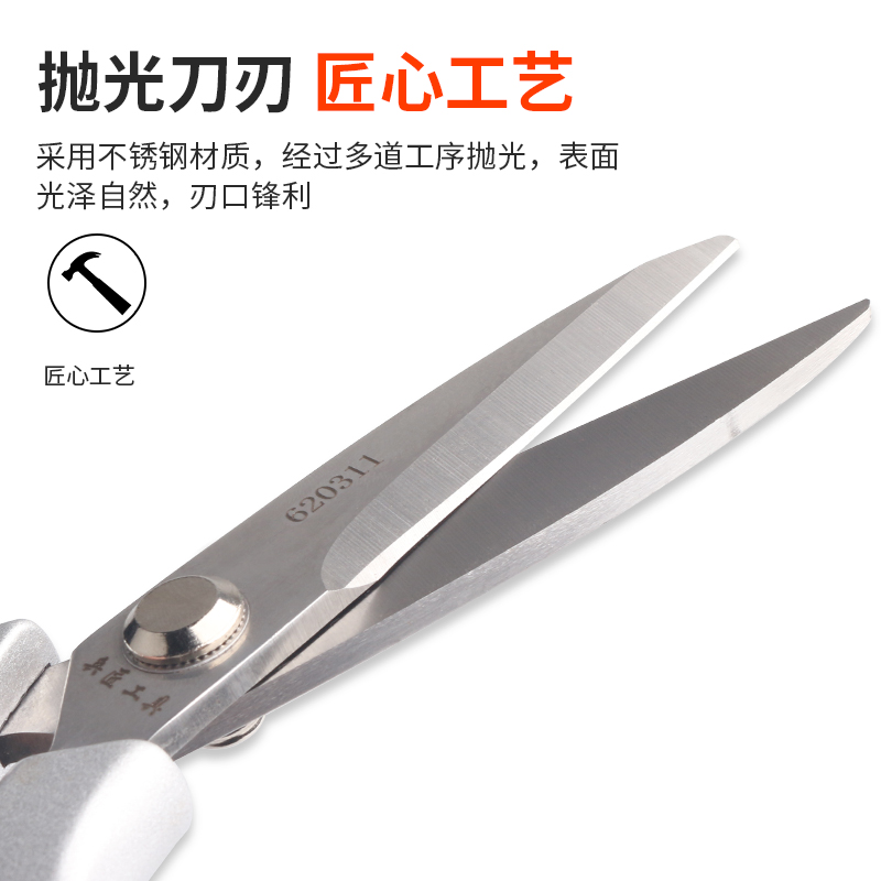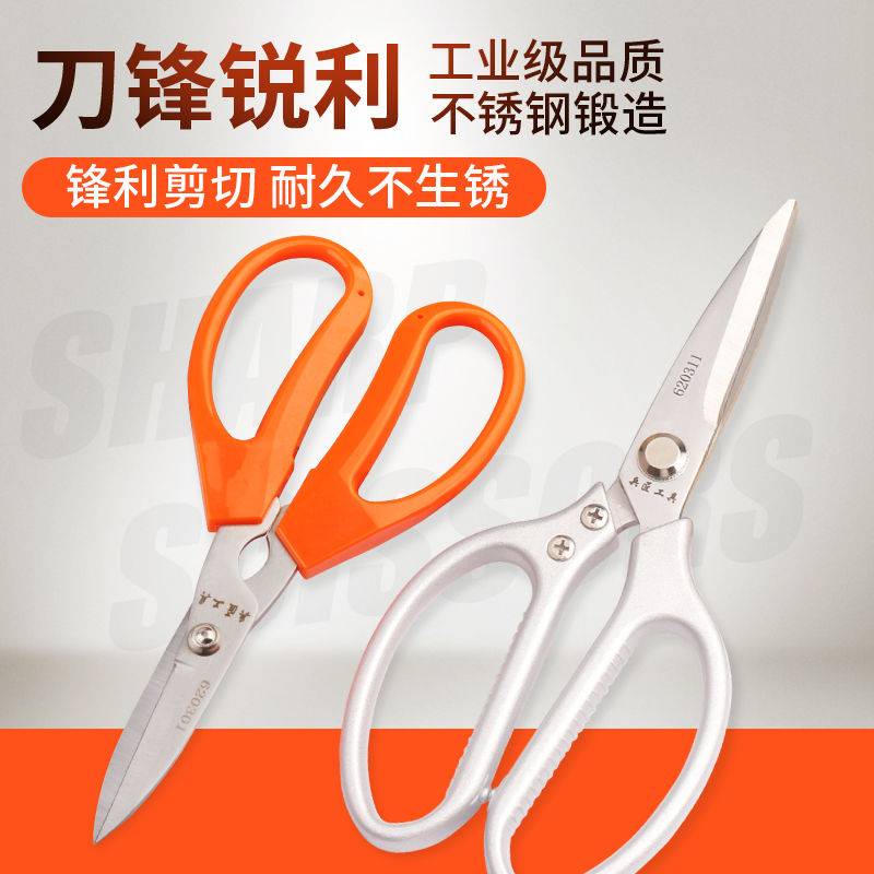 Stainless steel scissors Home kitchen dedicated strong industrial office primary school student leather large scissor paper tip line