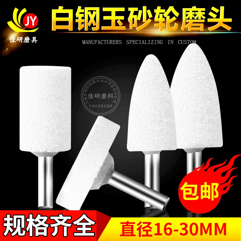 White corundum green silicon carbide grinding wheel grinding head metal polished rust-removing cylindrical conical T-shaped fire-stone electric grinding head 6mm