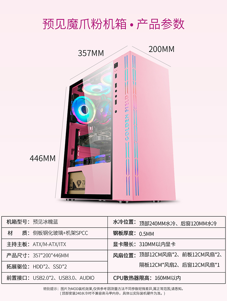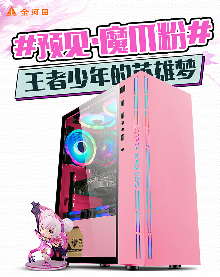 Jinhetian foresees RGB magic claw powder side through tempered glass water-cooled gaming pink desktop computer case