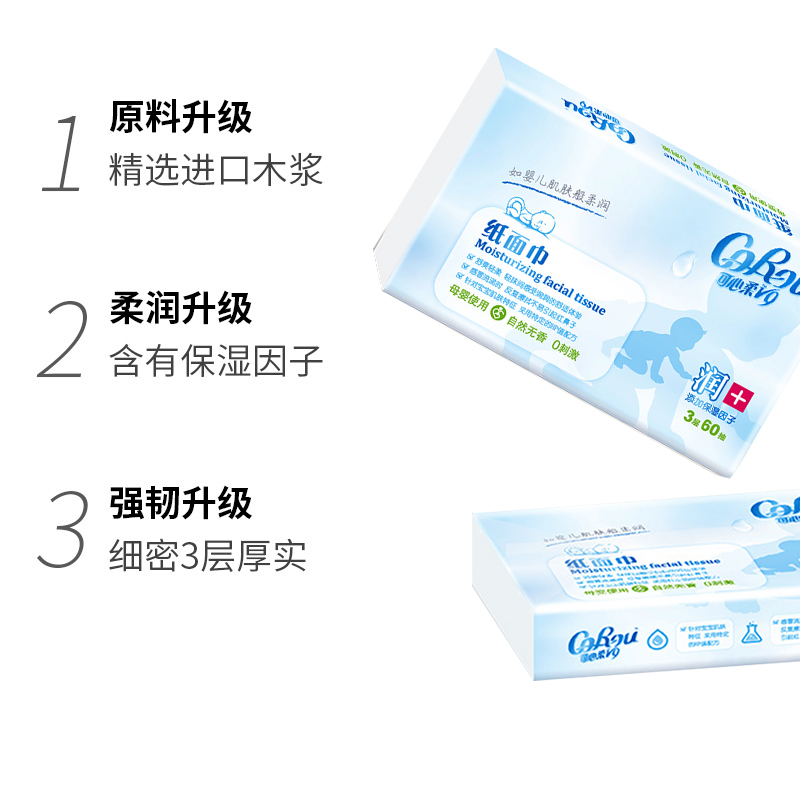 Kexinrou V9 baby soft tissue baby removable toilet paper cloud soft towel family whole box 3 layers 60 pumping 5 packs of moisturizing facial tissue