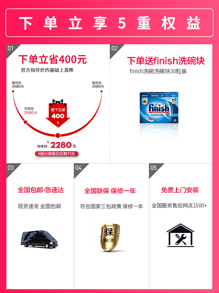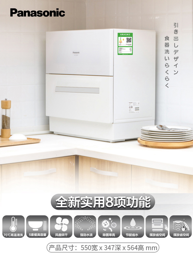 Panasonic Panasonic dishwasher automatic household H2A stand-alone desktop 6 sets of free installation sterilization brush bowl machine