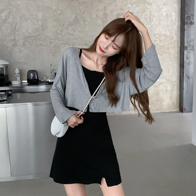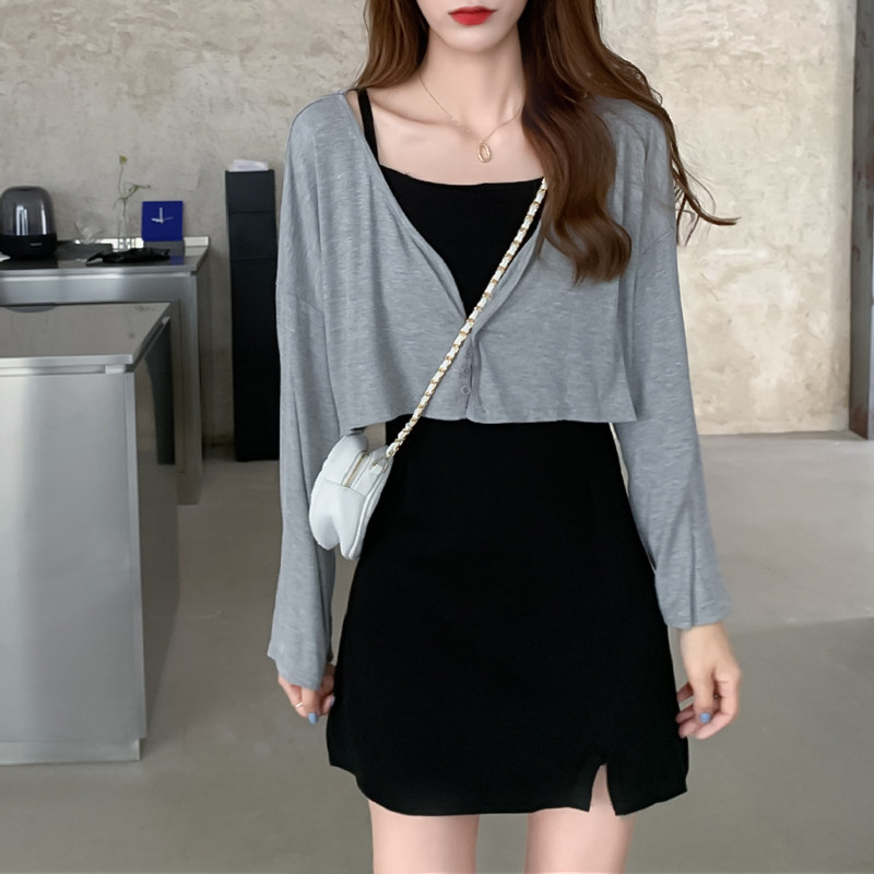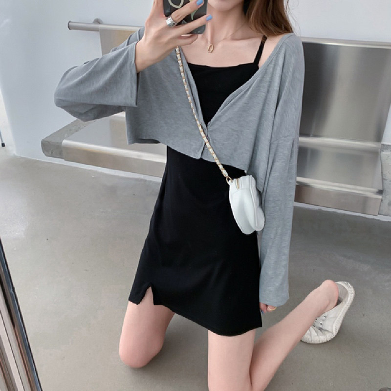 Small man Western style age-reducing fashion trendy two-piece suit design sense niche suspenders black dress women's autumn dress