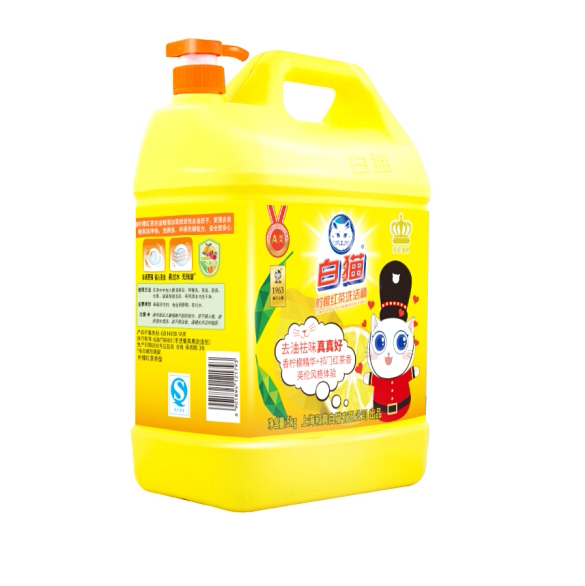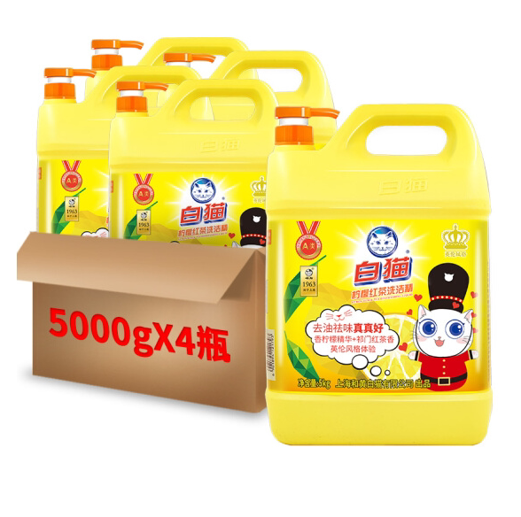 White cat dishwashing liquid lemon black tea 5kg*4 bottles of super strong degreasing does not hurt hands a bottle of 10 catties full box