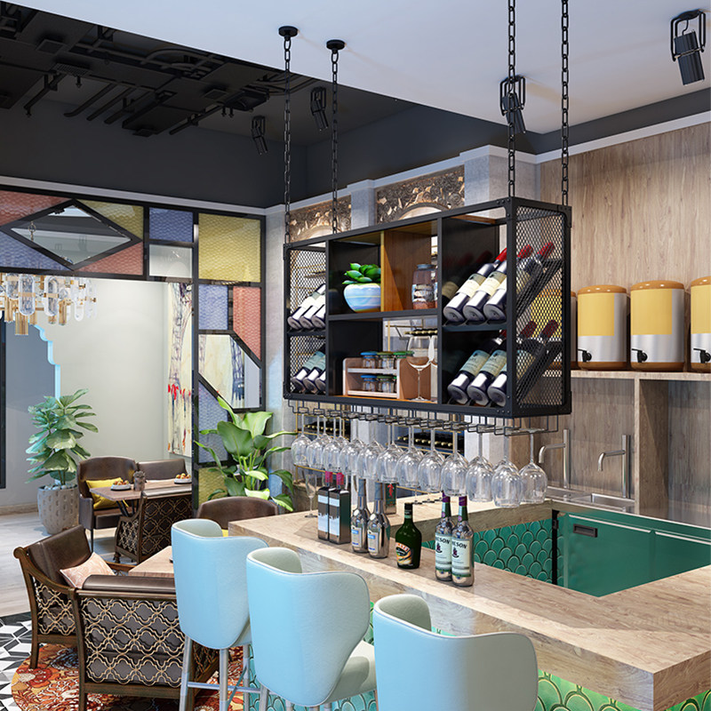Retro Red Wine Glass Shelf Upside Down Bar Table Red Wine Rack Swing Piece Home Creative High Foot Cup Shelf Suspended Wine Glass Shelf