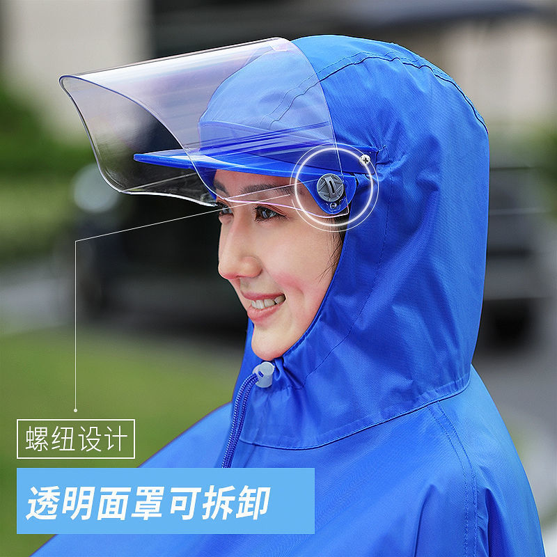 Electric helmet raincoat single person add thicker head wear removable mask battery car parent-child raincloak
