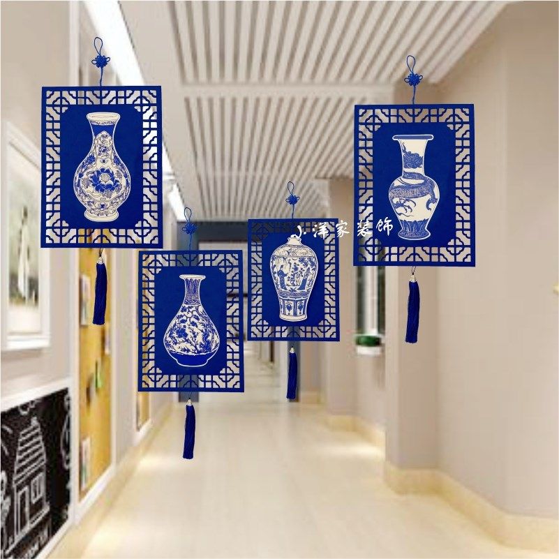 Green Flower Porcelain Vintage China Wind Hanging Decoration Kindergarten Classroom Corridor Floor corridor Ring Creative Placement Air Pendant Accessories-Taobao