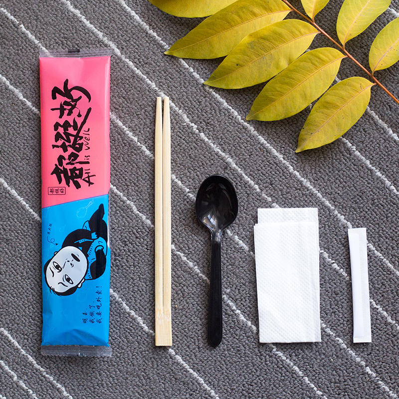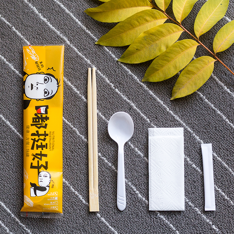 Disposable chopsticks four sets of sets of four-in-one suit can be customized with external delivery packaged cutlery spoon Three sets of commercial domestic use